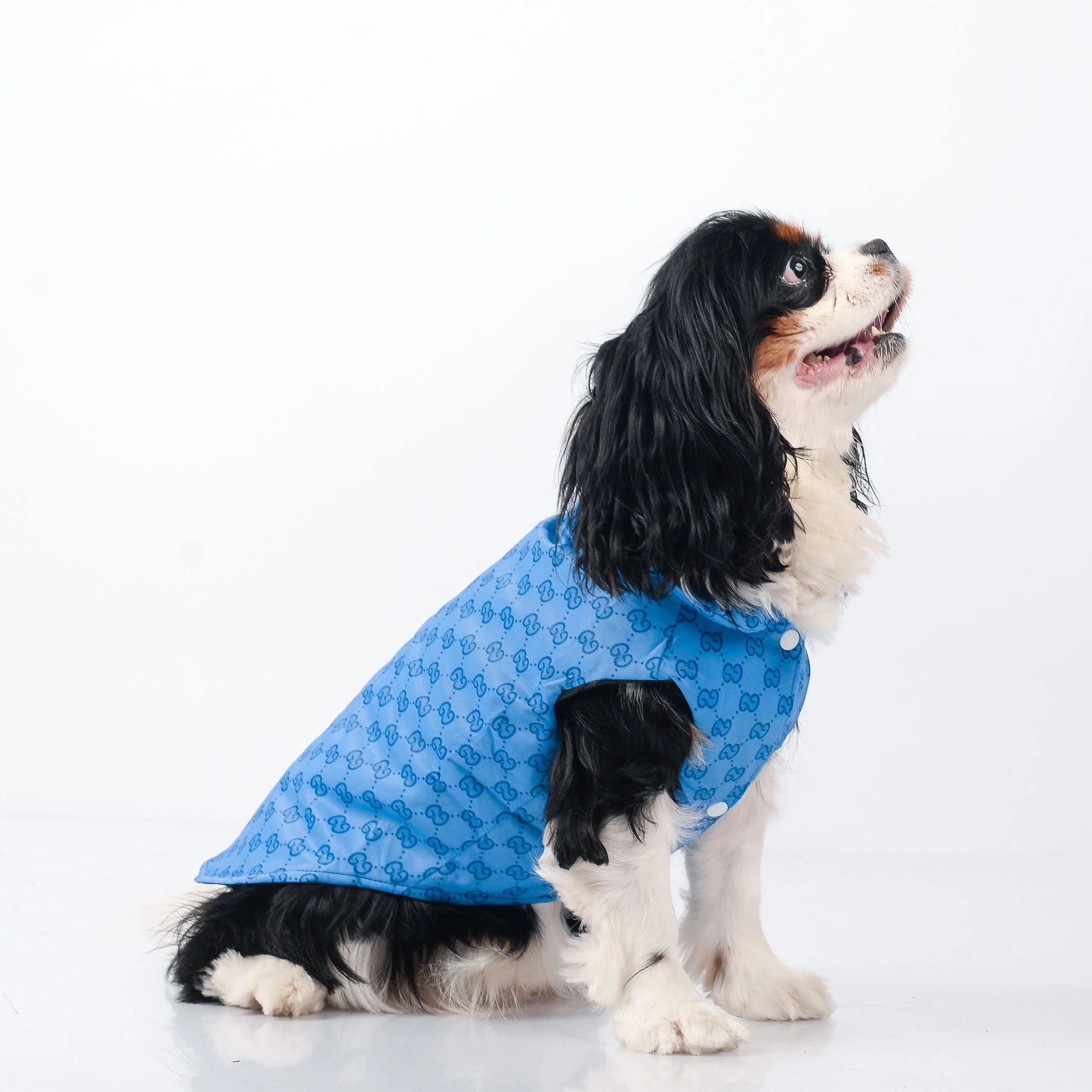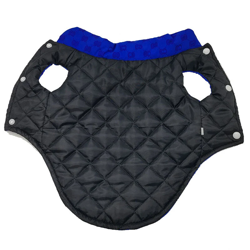 Haz que tu mascota luzca fabulosa y esté cómoda con el Chaleco acolchado botones GG azul. ¡La moda y la seguridad se unen para un paseo perfecto!