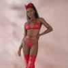 Con elegantes detalles plateados en los extremos y seductoras aberturas en la parte posterior y en el escote, este disfraz promete deslumbrar y sorprender. Para completar el look, incluye un colaless y una gorra a juego que le añadirán un toque extra de seducción.