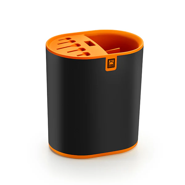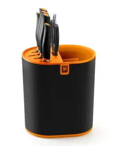Fabricado con materiales eco-friendly de alta calidad y resistencia, este organizador no solo cuida tus herramientas, sino también el planeta. Su diseño inteligente ofrece ranuras específicas para diferentes tipos de cuchillos, desde el cuchillo de chef hasta el mondador, asegurando que cada uno tenga su lugar. La base protege las hojas, prolongando su filo y garantizando tu seguridad.