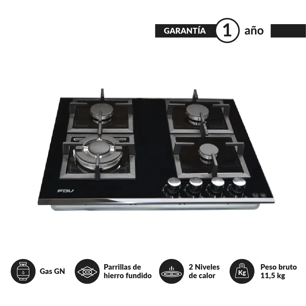 Encimera a Gas Natural 4 Quemadores 60cm Black FDV
