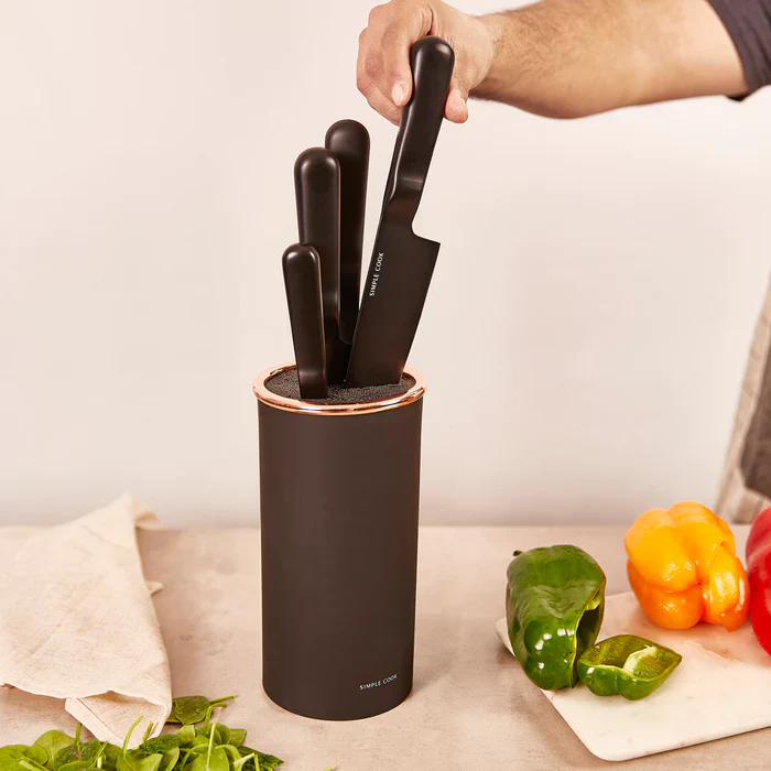 Además de su estilo y funcionalidad, el Set de Cuchillos 5pz Lincoln SIMPLECOOK es completamente seguro. Los cuchillos vienen con fundas protectoras que previenen accidentes y permiten un almacenamiento sin preocupaciones en tu cocina. Dale un toque de frescura y responsabilidad ecológica a tus preparaciones culinarias con este set excepcional.
