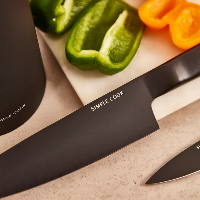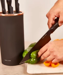 Con un acabado elegante y moderno, cada cuchillo está fabricado con materiales ecológicos que respetan el medio ambiente. Su diseño ergonómico y antideslizante garantiza un agarre cómodo, permitiéndote picar, cortar y rebanar con facilidad y precisión. Además, los bordes afilados están optimizados para una máxima durabilidad y rendimiento, lo que hace que cocinar sea un verdadero placer.