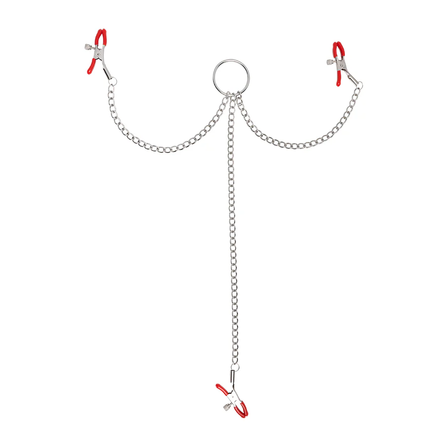 ¡Atrévete a explorar nuevas sensaciones con las Pinzas Para Pezones Cadena Clítoris Silver – Red!