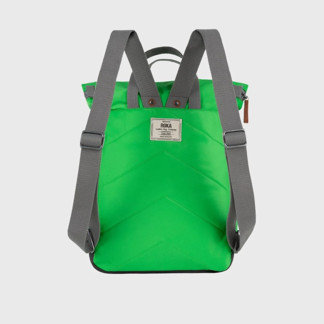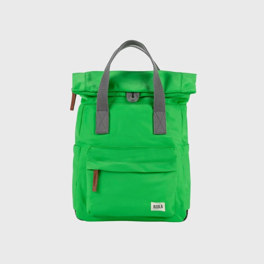 ¡Descubre la mochila Roka London Canfield B en un vibrante verde kelly! Diseñada para los aventureros modernos, esta mochila pequeña no solo parece increíble, sino que también está hecha de nylon reciclado, lo que la convierte en una opción ecológica y responsable.
