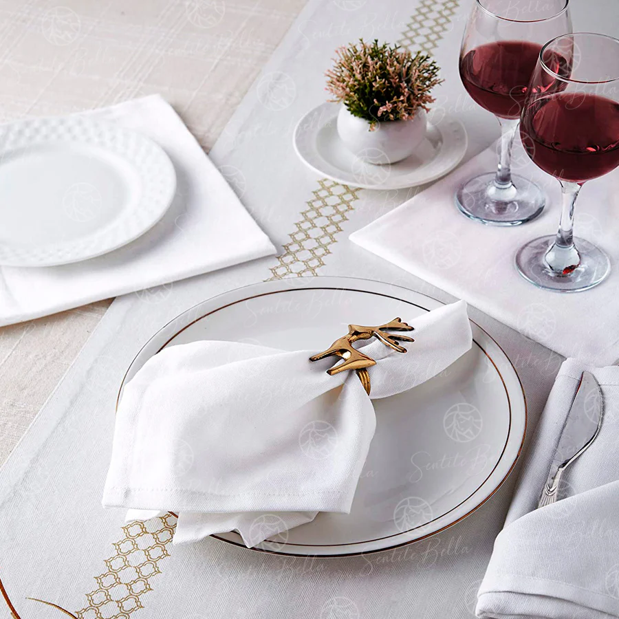 – **Comodidad**: Con una medida de 40 cm x 40 cm, nuestras servilletas son ideales para uso diario. Su terminación en doblez las hace fáciles de cuidar y lavar.