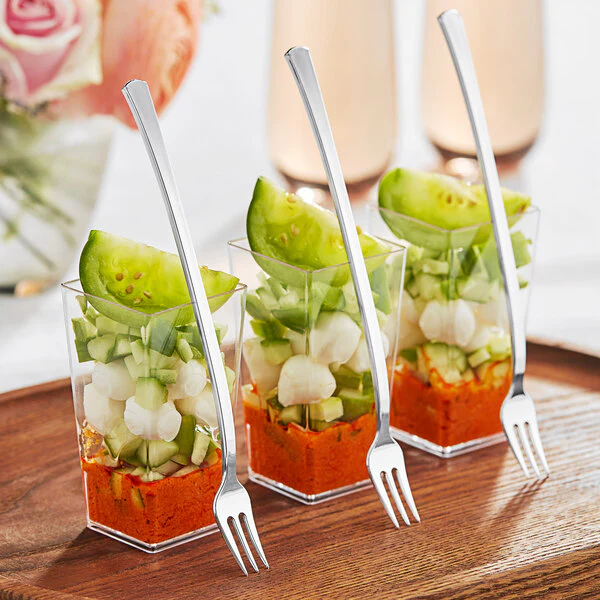 ¿Estás buscando la forma perfecta de ofrecer una degustación memorable a tus clientes? Nuestros tenedores plateados para degustación son la solución ideal para cualquier restaurante, café o establecimiento gastronómico que busque mejorar la experiencia de sus clientes.