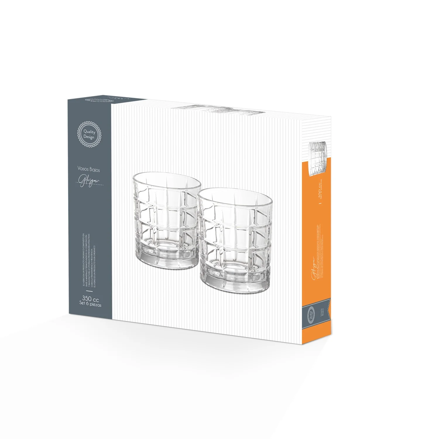 Descubre el Set De 6 Vasos Bajos Glasgow, perfectos para todas tus reuniones y celebraciones. Cada vaso tiene una capacidad de 350 cc, ideal para disfrutar de tus bebidas favoritas, desde refrescantes cócteles hasta suaves jugos naturales. Su diseño robusto y elegante no solo se ve increíble en la mesa, sino que también los hace súper prácticos y duraderos.