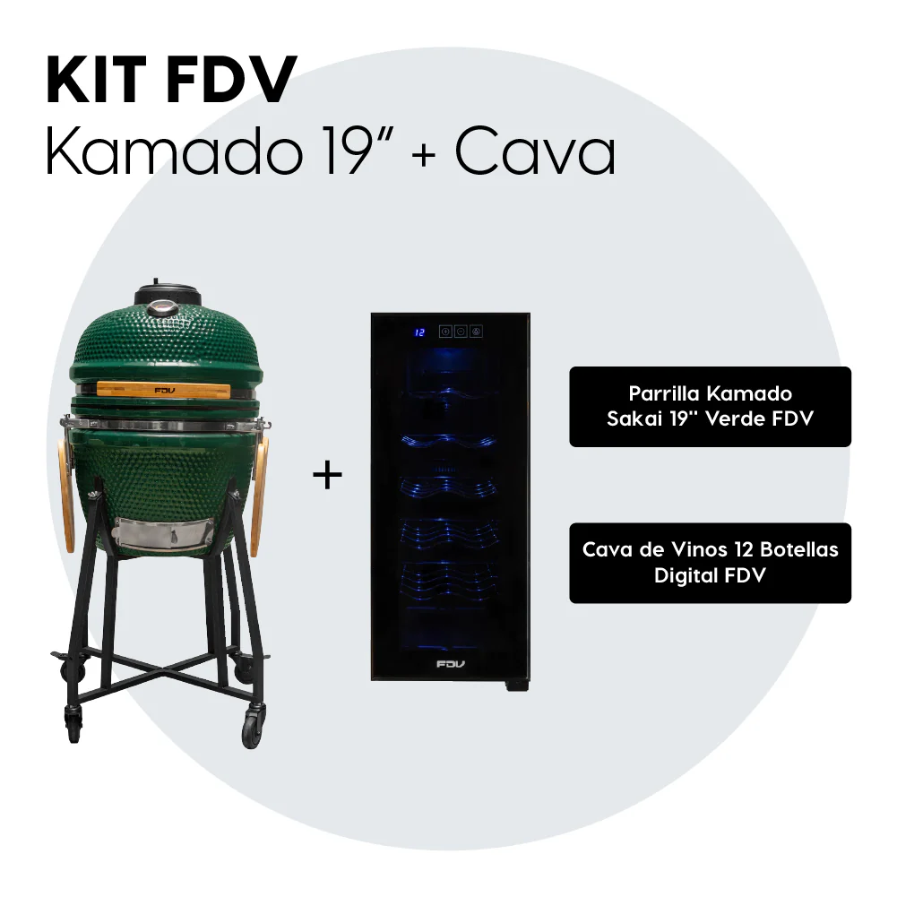 ¡Prepárate para elevar tus experiencias culinarias al siguiente nivel con el **Kit Kamado Sakai Verde 19 + Cava de Vino Black 12 Botellas FDV**!