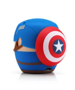 ¡¿Quieres llevar el estilo de Captain America contigo a cualquier lugar? ¡El Parlante Bluetooth Portatil Captain America Marvel Bitty Boomers es el perfecto compañero para los fanáticos de Marvel!