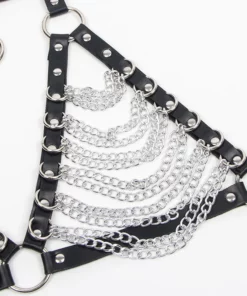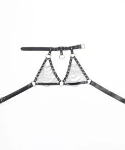 Imagina la suavidad del cuero vegano sobre tu piel, adornado con delicadas cadenas y detalles en forma de estrella. ¡Un diseño único que captura todas las miradas! Y lo mejor de todo, es eco-friendly y seguro para ti y para el planeta. Fabricado con materiales de alta calidad, este arnés sujetador y collar te ofrecen un confort excepcional sin comprometer el estilo.